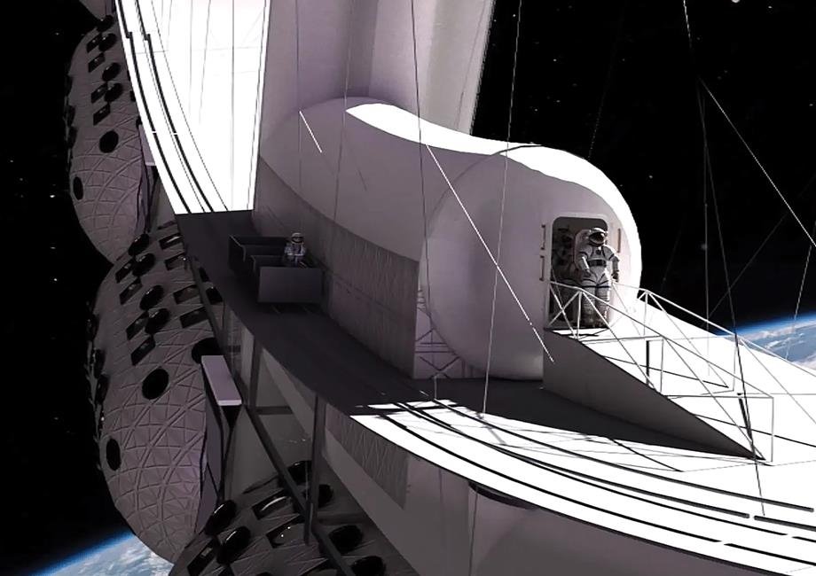 Spilker said that Orbital Assembly has also developed a blueprint for reducing the cost of launching the space station modules themselves. Made of several layers of ultra-sturdy but collapsible materials, the modules will be folded prior to launch and mounted on the outside of the vehicle. Once in orbit, each module will be inflated, increasing its volume to become a habitable enclosure.